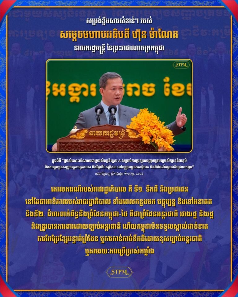 សម្តេចមហាបវរធិបតី ហ៊ុន ម៉ាណែត នាយករដ្ឋមន្រ្តី នៃព្រះរាជាណាចក្រកម្ពុជា បានថ្លែងក្នុងពិធីសំណេះសំណាលជាមួយសិស្សជាប់និទ្ទេស A សម្រាប់ការប្រឡងសញ្ញាបត្រមធ្យមសិក្សាទុតិយភូមិ និង ការប្រឡងសញ្ញាបត្របច្ចេកទេស និង វិជ្ជាជីវៈ កម្រិត៣ នៅព្រឹកថ្ងៃទី ១០ ខែ កុម្ភៈ ឆ្នាំ ២០២៦ ថា…